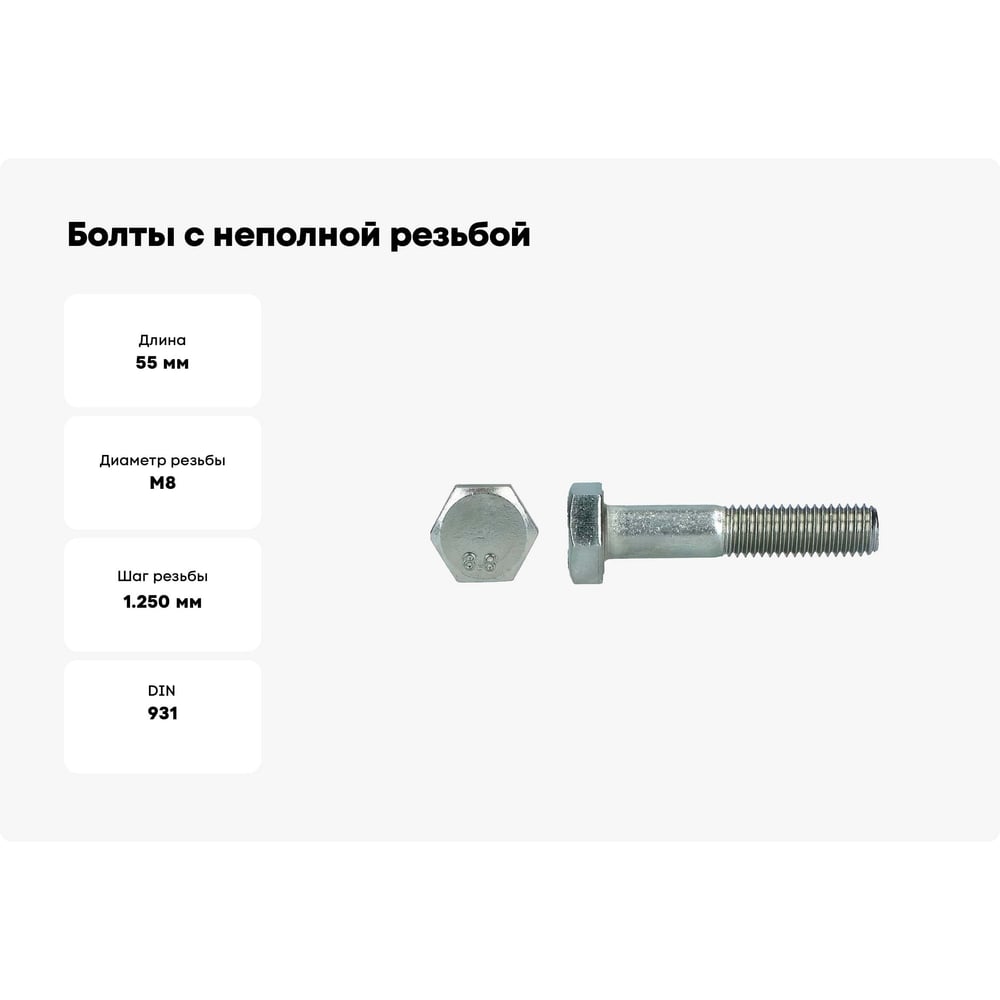 Болты с неполной резьбой КРЕП-КОМП DIN 931, цинк, 8x55 мм, пр.8.8, 25 кг дин931ц8.8-855