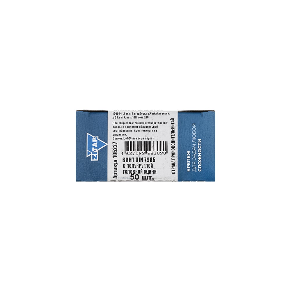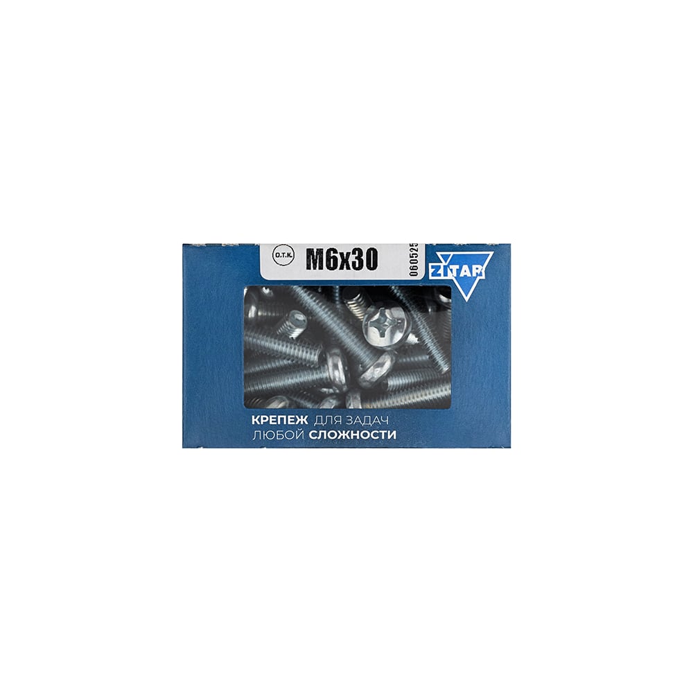 Винт DIN7985 с полукруглой головкой оцинкованный М6x30 мм, 50 шт, коробка с окном Zitar 105227