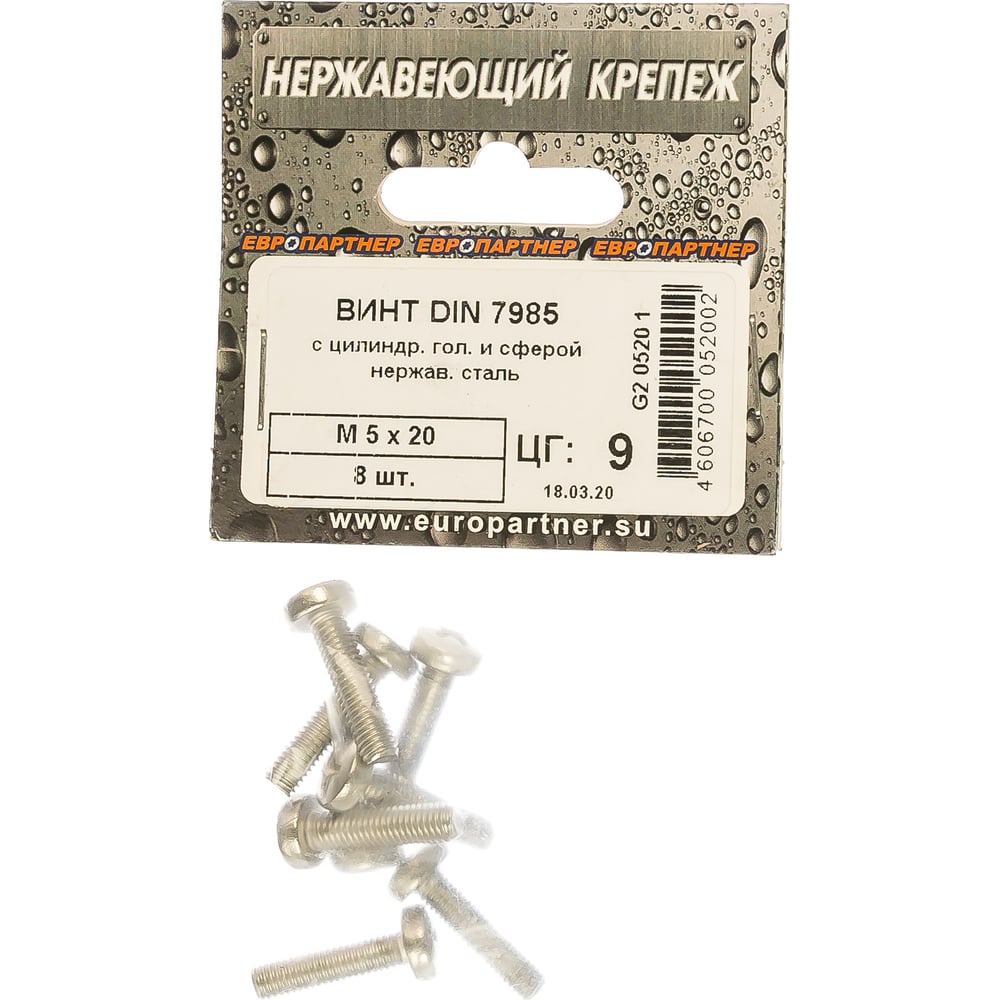 Винт с цилиндрической головкой и сферой ЕВРОПАРТНЕР DIN 7985 М5х20 нержав. сталь 8 шт. G2 0520 1