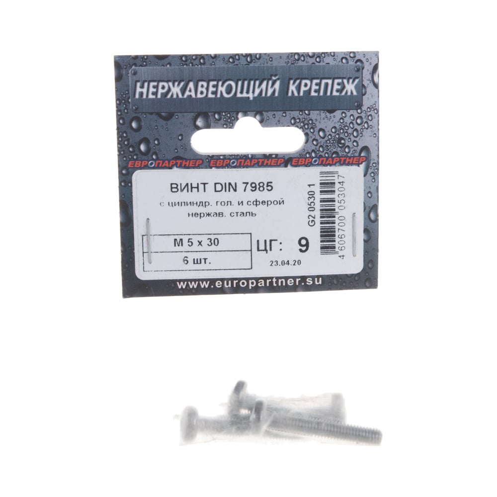 Винт с цилиндрической головкой и сферой ЕВРОПАРТНЕР DIN 7985 М5х30 нержав. сталь 6 шт. G2 0530 1