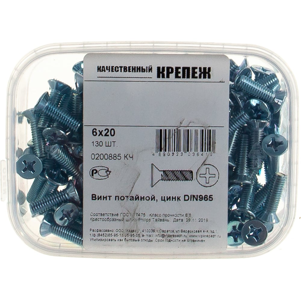 Винт качественный крепеж 6x20130 DIN965 (130 шт.) 0200885
