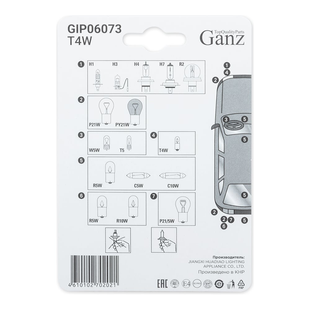 Лампа GANZ 12V T4W 4W BA9s 2 шт. блистер GIP06073