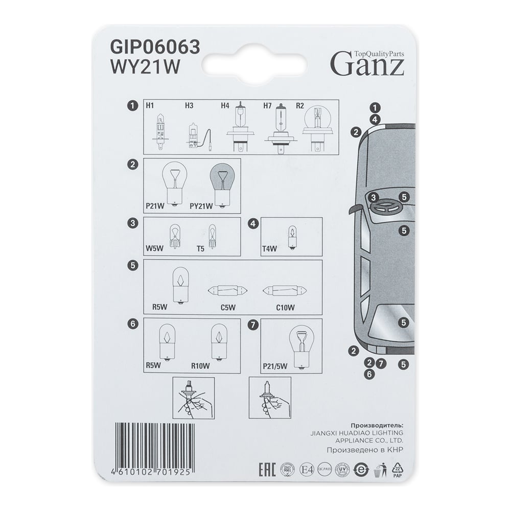Лампа GANZ 12V WY21W 21W W3x16d 2 шт. блистер GIP06063