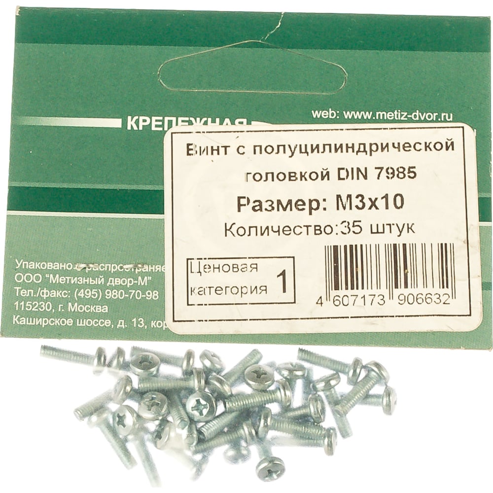 Винт с полуцилиндрической головкой Метизный двор 3x10 DIN 7985. 35 шт. 4607173906632