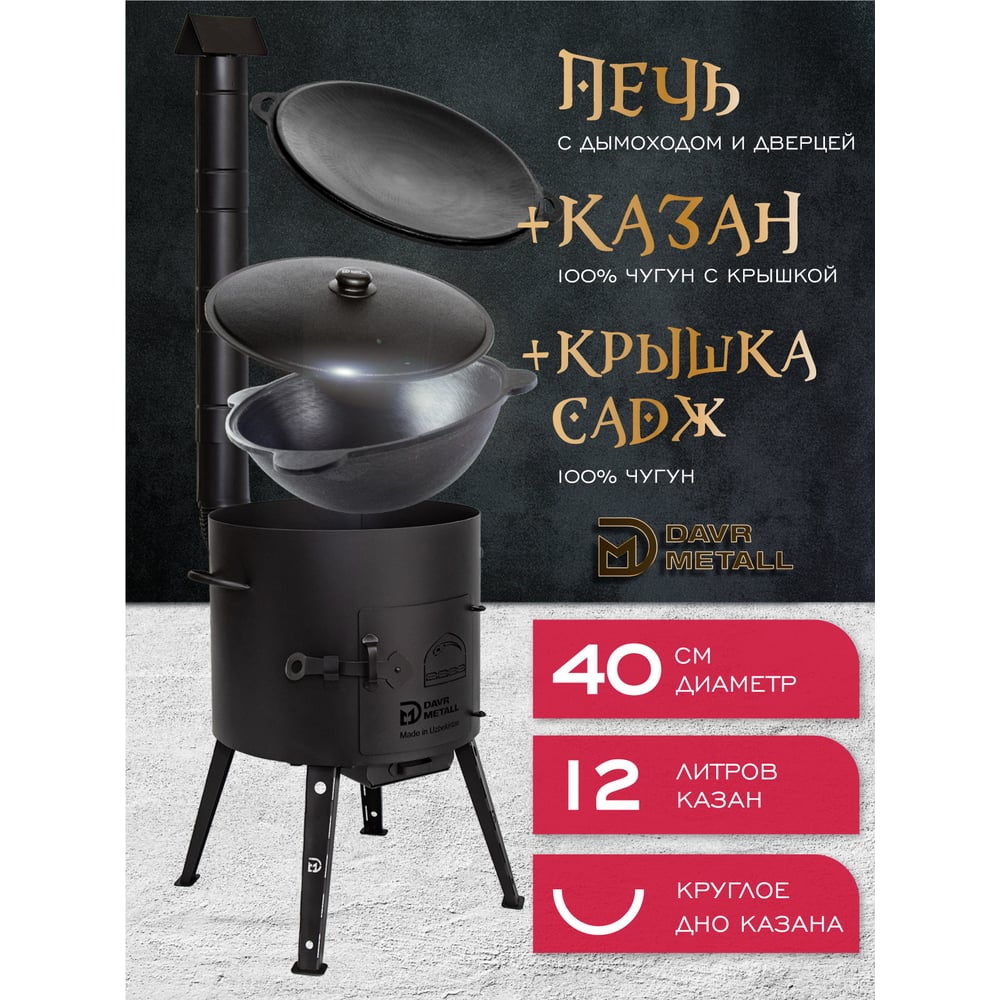 Печь + казан + крышка садж Davr Metall 12 литров круглое дно печь+казан12(круг)+садж