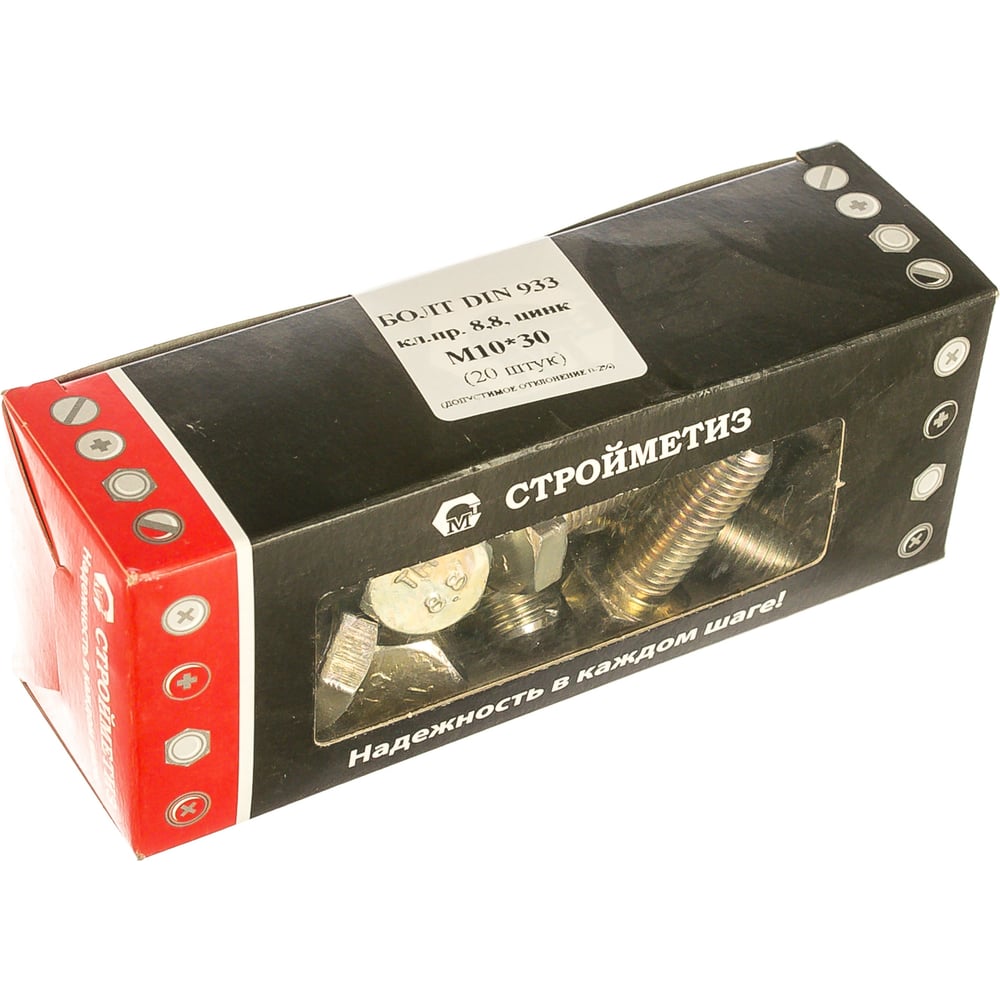 Болт Стройметиз М10х30 DIN 933, класс прочности 8.8, цинк уп. 20 шт. 3022034