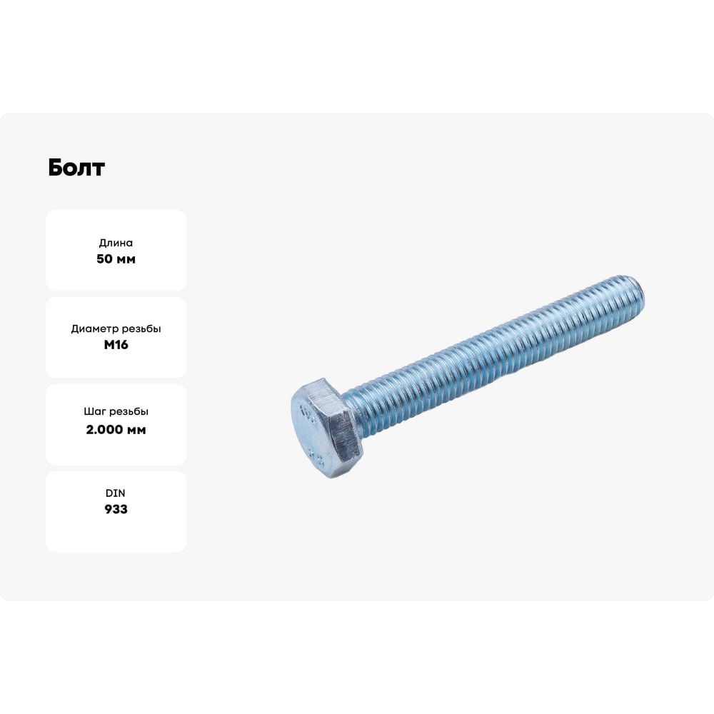 Болт Стройметиз полная резьба DIN933 М16х 50, класс прочности 5. 8, цинк 9 шт. 3015088