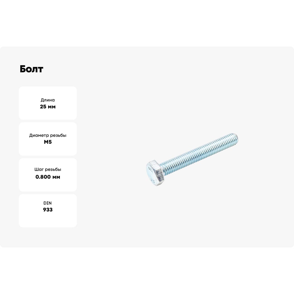 Болт Стройметиз М5х25 DIN 933, класс прочности 8.8, цинк уп. 6 шт 3020831