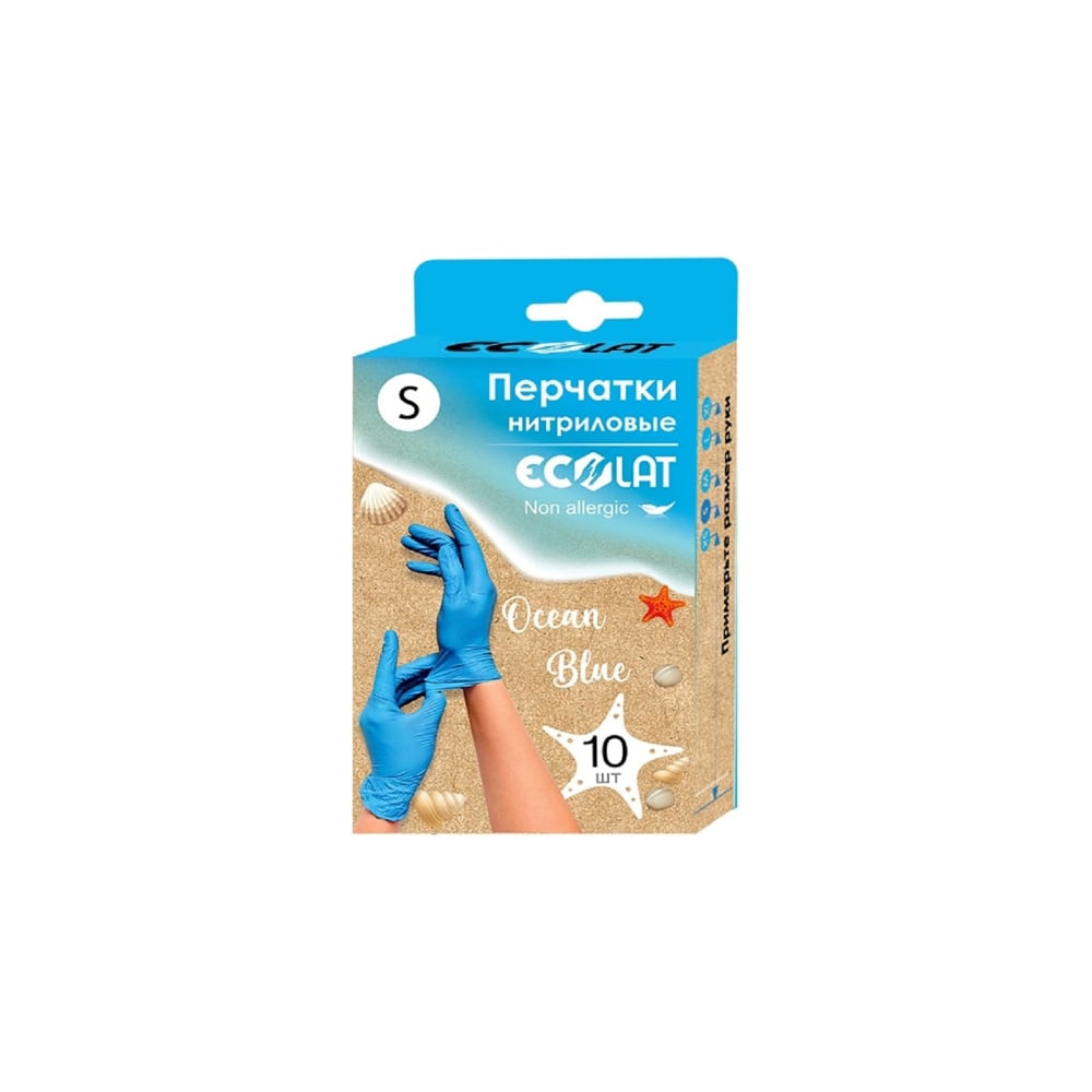 Нитриловые перчатки EcoLat голубые, 10 шт./уп., размер S 73035/S