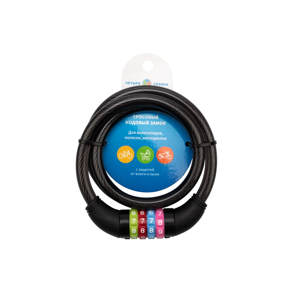 Тросовый кодовый замок для велосипедов и колясок Четыре сезона 100 см, черный 79-0206