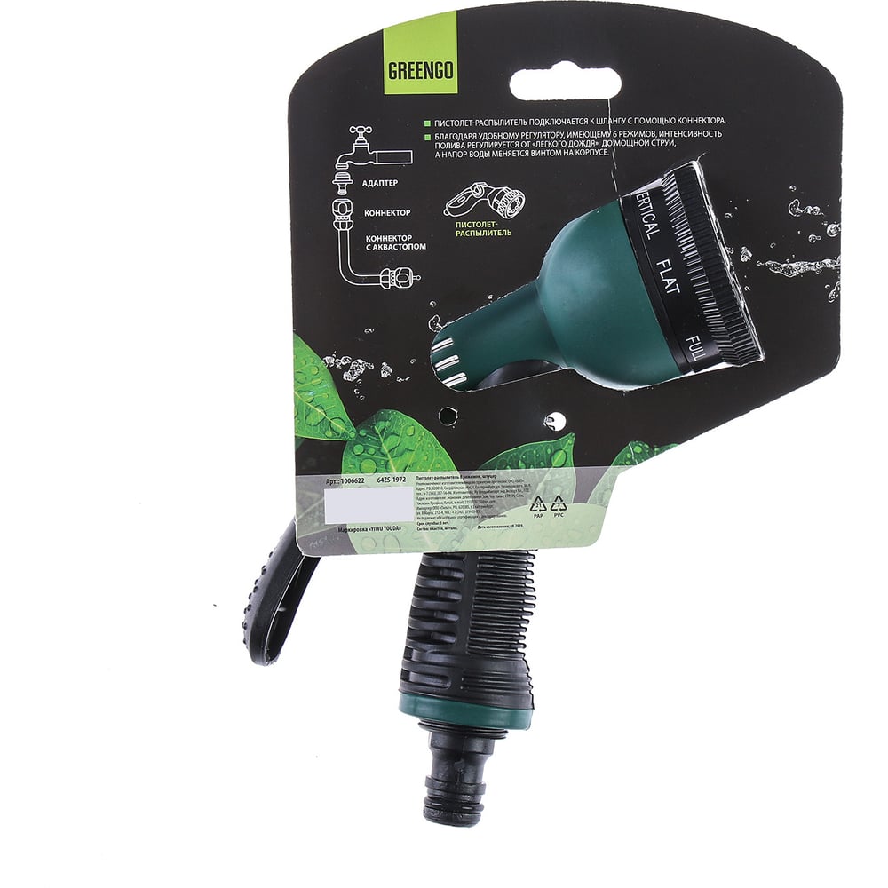 Пистолет-распылитель Greengo 8 режимов, штуцер, pp-пластик 1006622