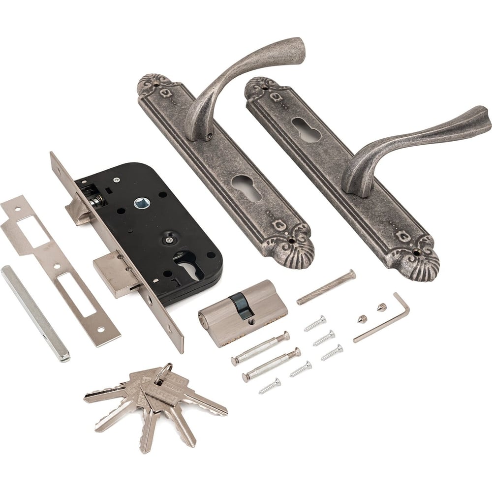 Врезной замок с ручками Аллюр ЗВ4-70.07 AS состаренное серебро 10573