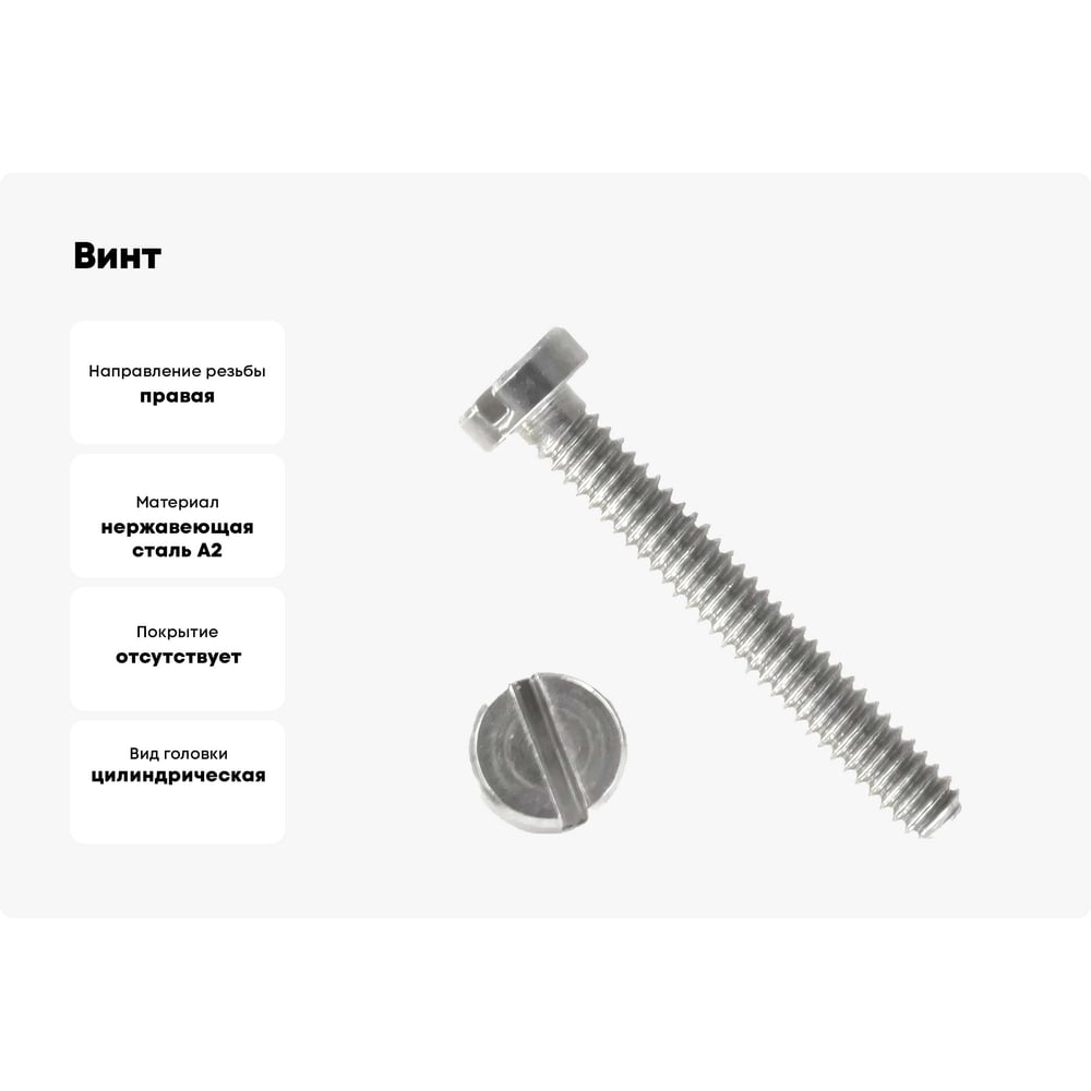Винт с цилиндрической головой ВИРТУОЗ прямой шлиц, 3x10 мм, DIN 84, нерж. сталь А2, 20 шт. 44925