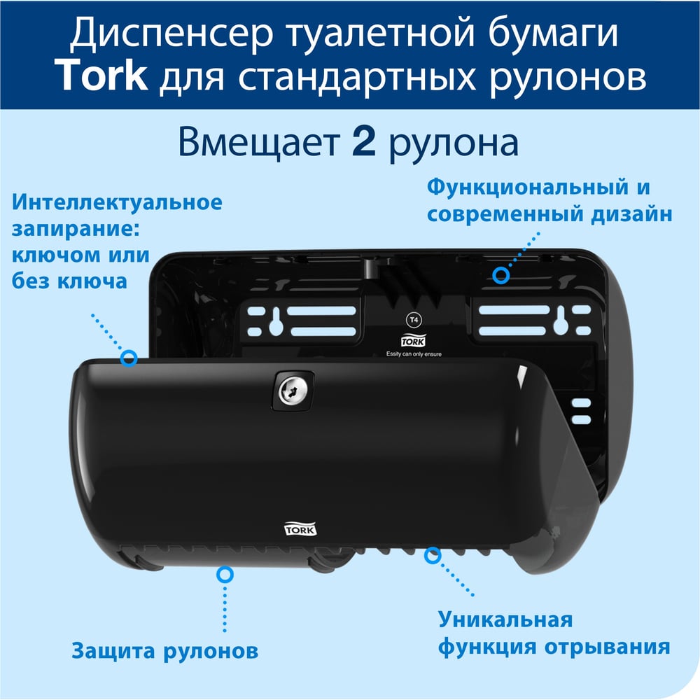 Диспенсер для туалетной бумаги Tork Elevation T4 в стандартных рулонах, черный арт. 557008