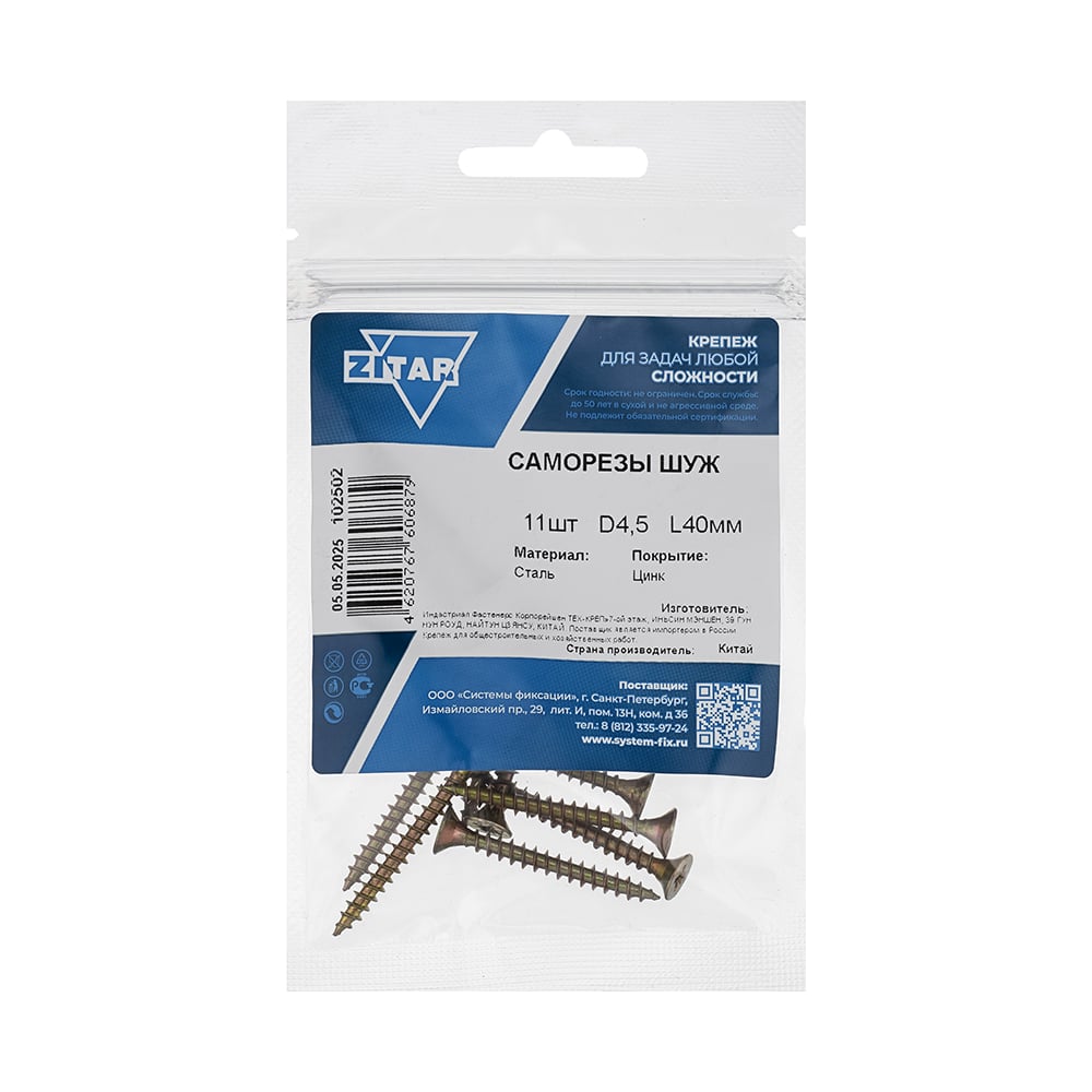 Саморез ШУж с потайной головкой 4,5x40 мм, 11 шт., пакет Zitar 102502