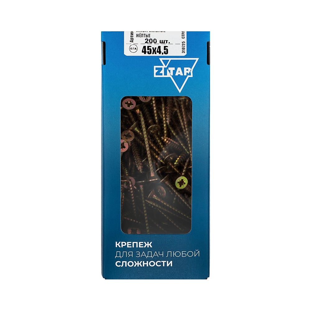 Универсальные саморезы 45x4,5 мм 200 шт желтые коробка с окном Zitar 102255