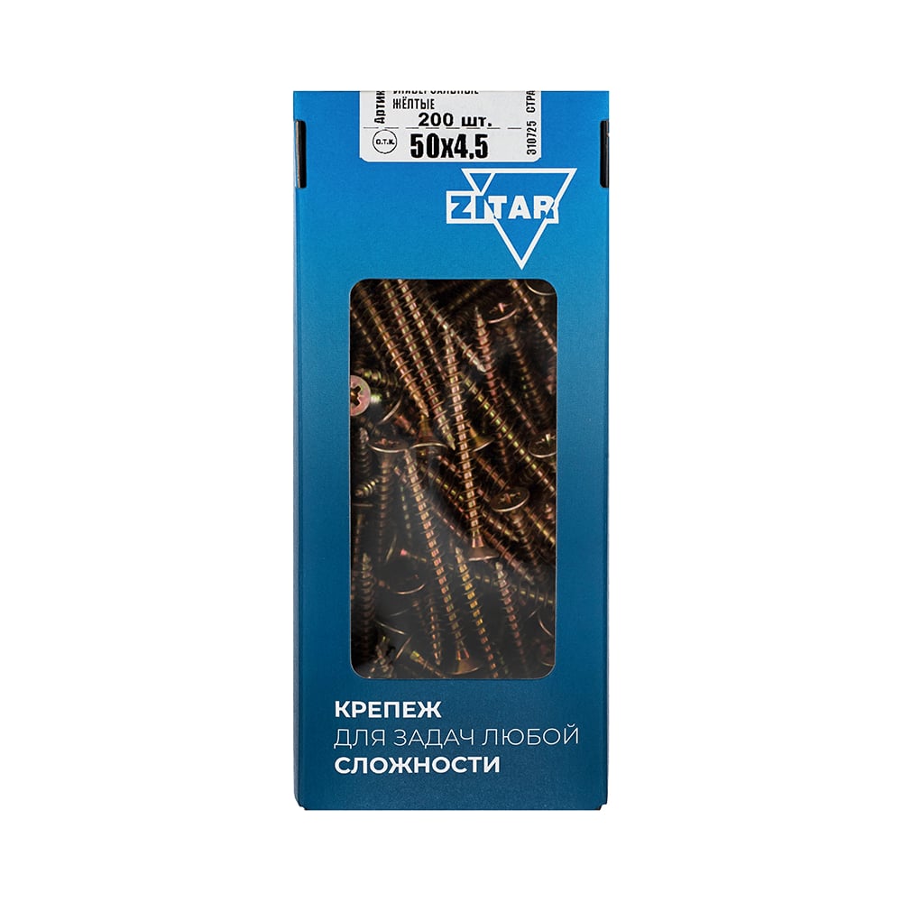 Универсальные саморезы, желтые, 50x4,5 мм, 200 шт., коробка с окном Zitar 102256