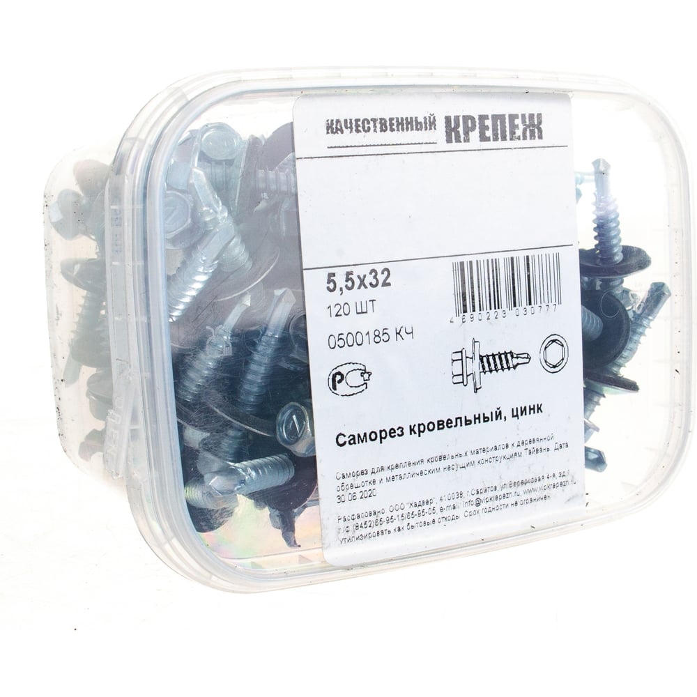Кровельный саморез Качественный КРЕПЕЖ цинк, 5.5х32 мм, 120 шт 0500185 КЧ