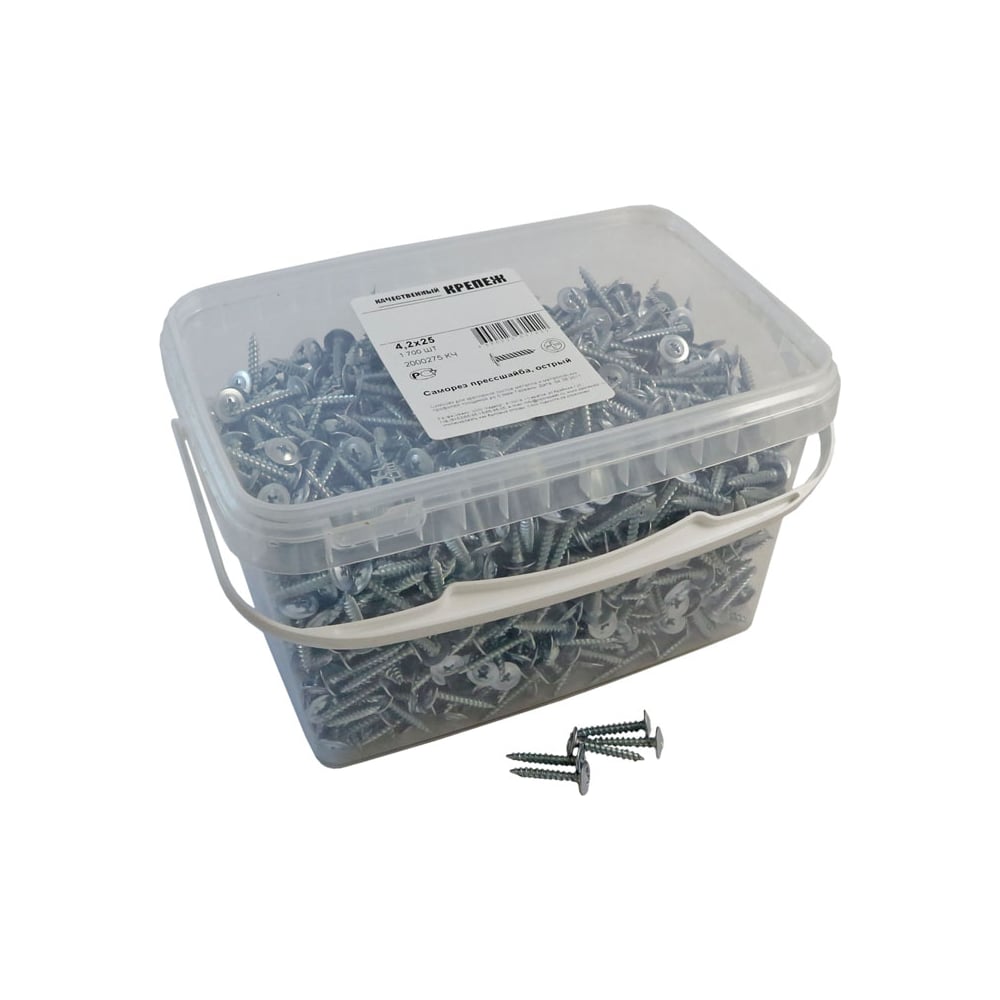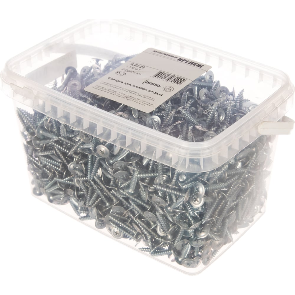 Саморез с прессшайбой Качественный КРЕПЕЖ 4,2х25 мм острый 1700 шт 2000275 КЧ