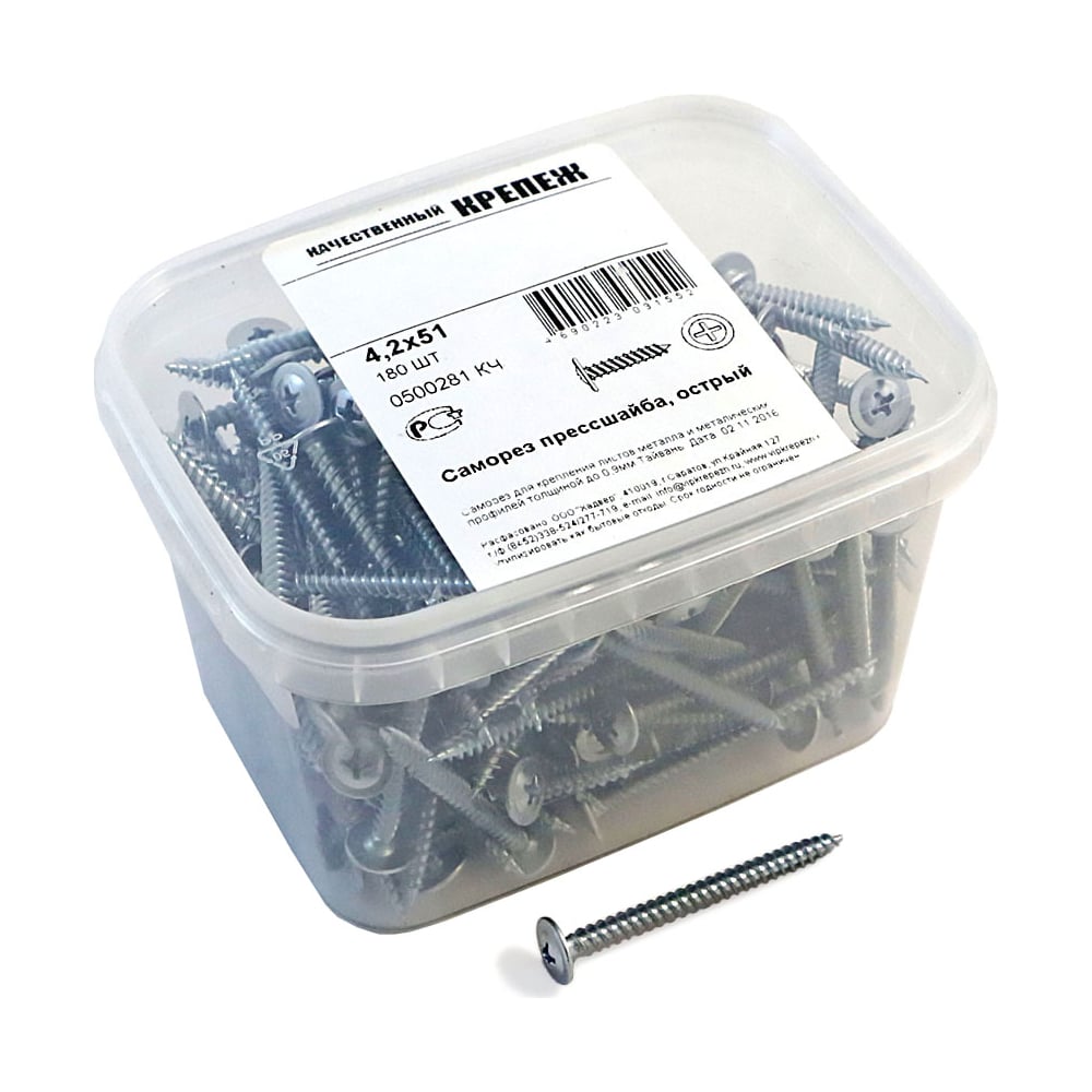 Острый саморез с прессшайбой качественный крепеж 4,2/51 (180 шт.) 0500281