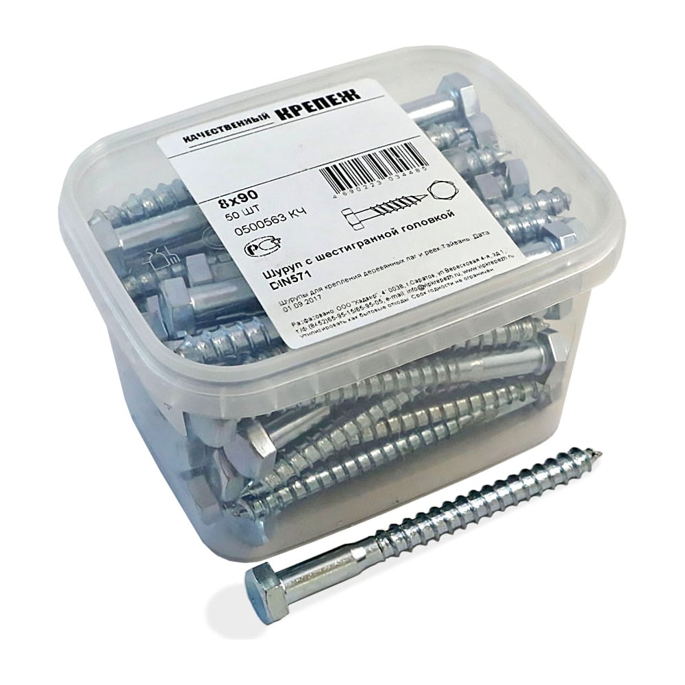 Шуруп с шестигранной головкой Качественный КРЕПЕЖ 8х90, 50 шт. 0500563 КЧ