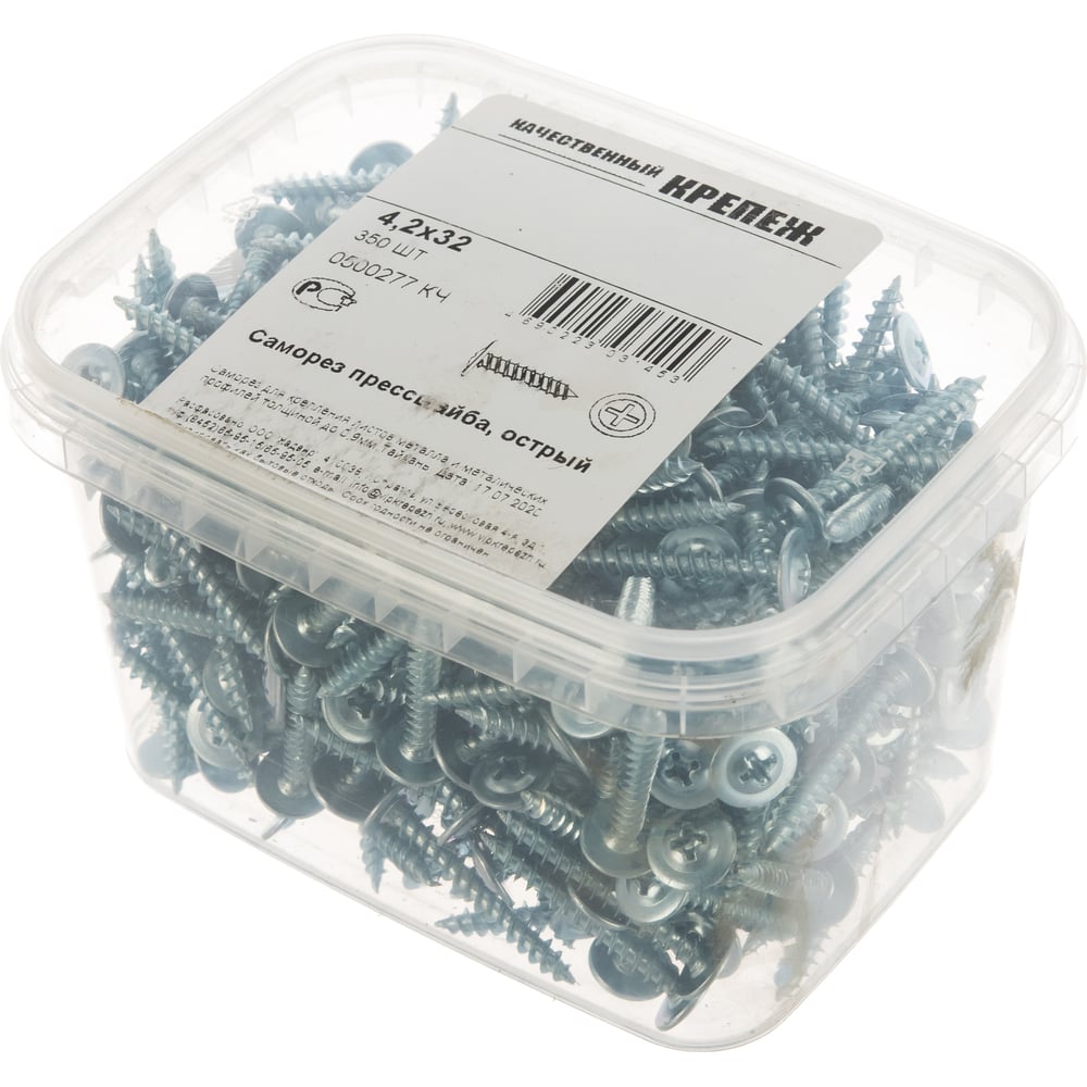 Саморез с прессшайбой Качественный крепеж 4,2х32 острая 350 шт 0500277 КЧ