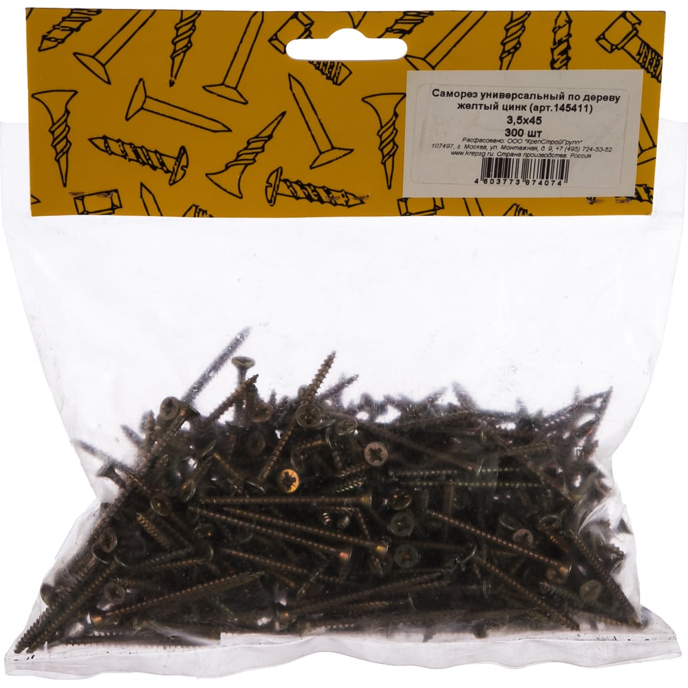Универсальный саморез по дереву КрепСтройГрупп 3,5х45 желтый цинк, 300 шт. 145411
