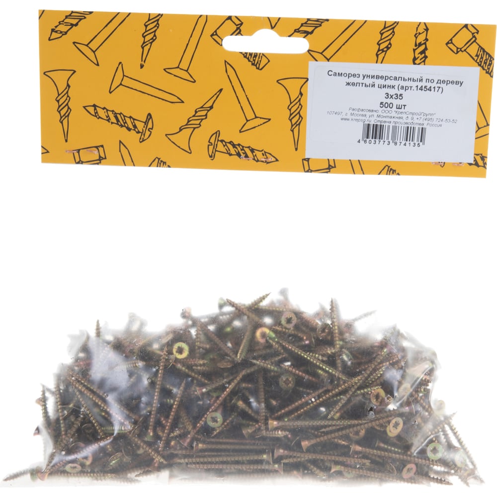Универсальный саморез по дереву КрепСтройГрупп 3х35 желтый цинк, 500 шт. 145417