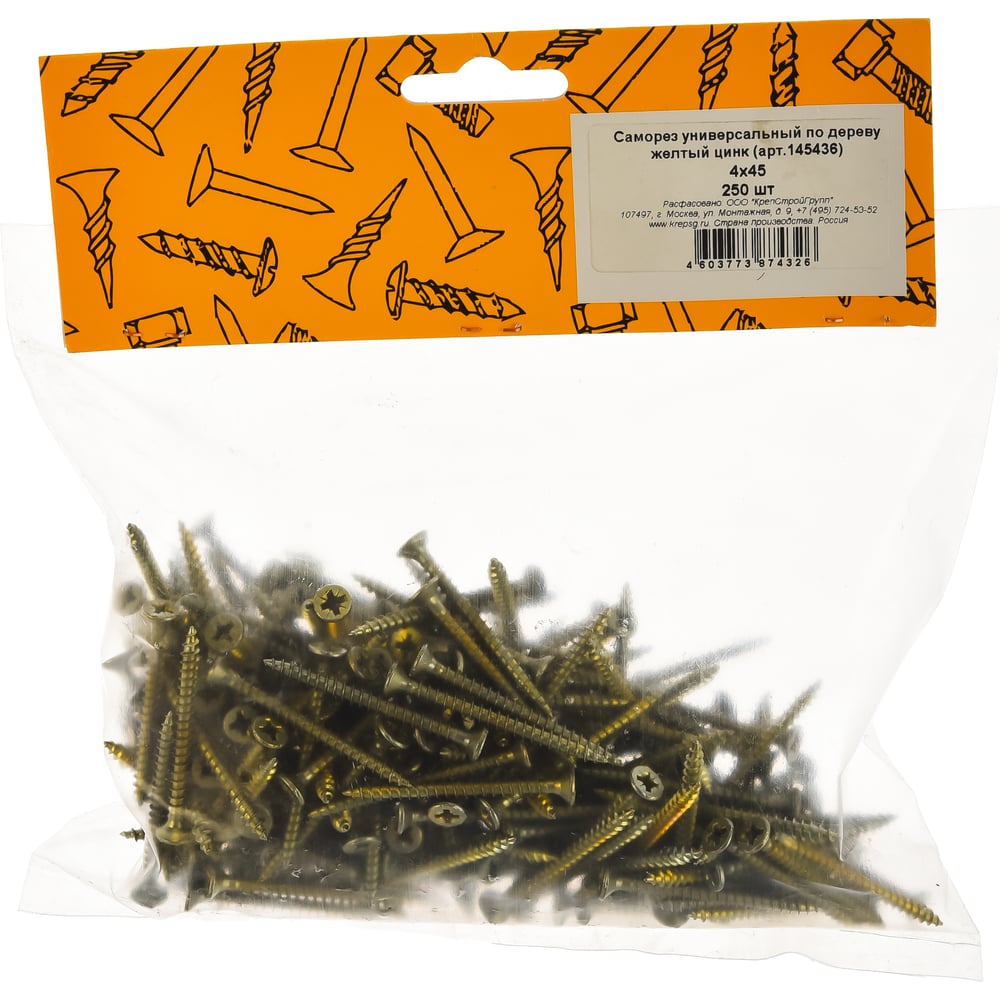 Универсальный саморез по дереву КрепСтройГрупп 4х45 желтый цинк, 250 шт. 145436
