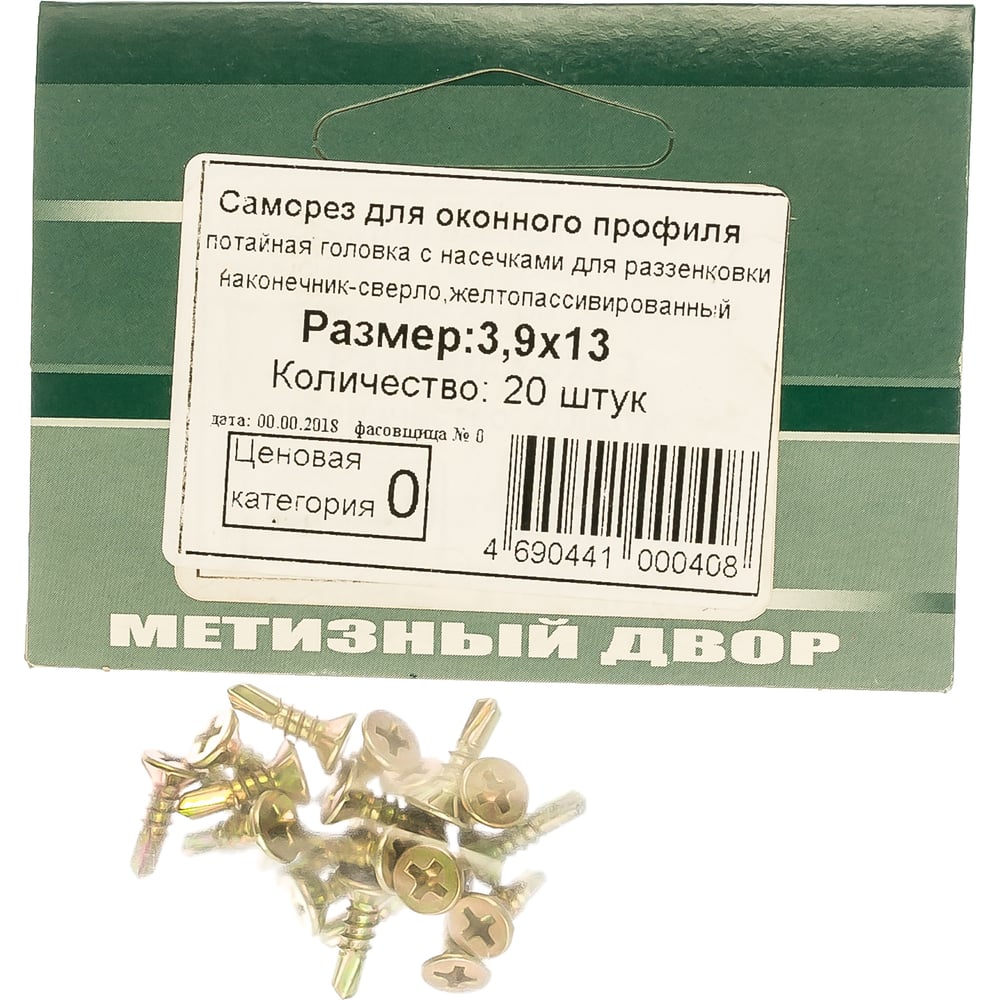 Оконный саморез Метизный двор 3,9x13 сверло, желтый, 20 шт. 4690441000408