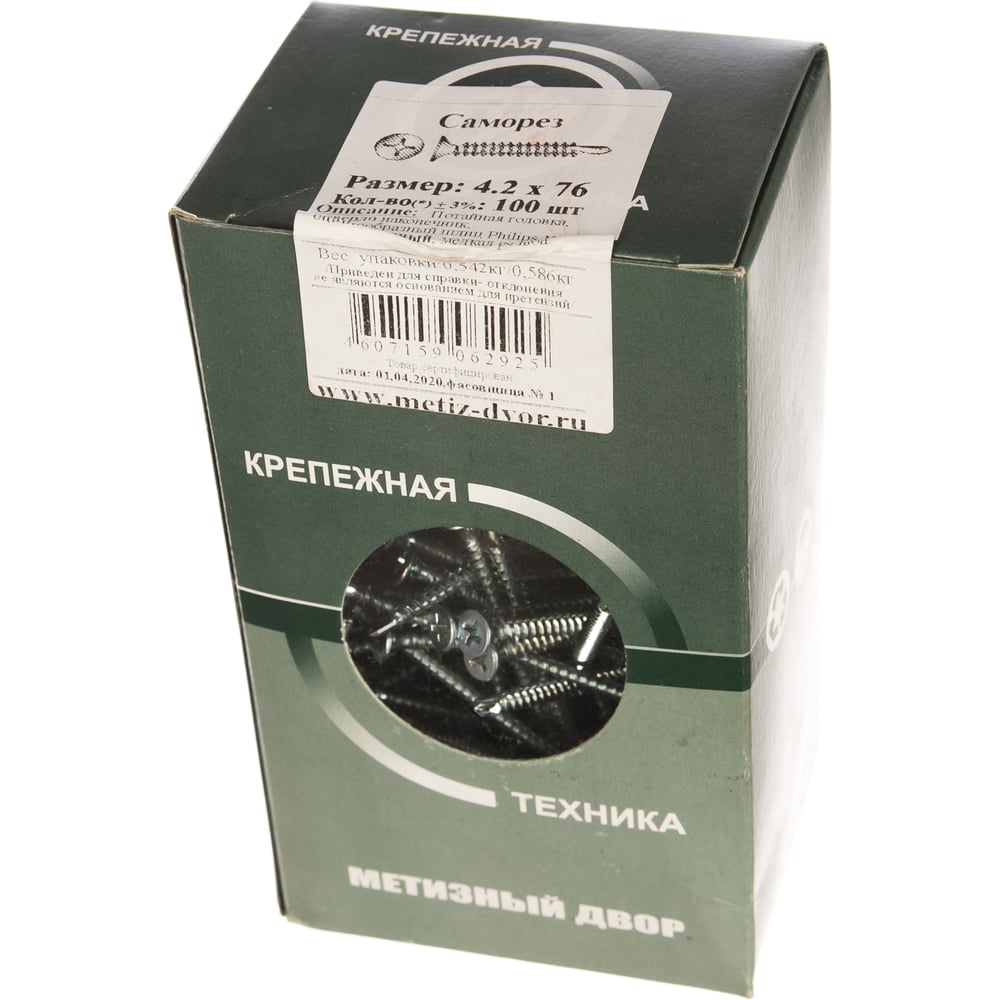Саморез по металлу для ГКЛ Метизный двор 4,2x76 потайной, оцинк, сверло, 100 шт. 4607159062925