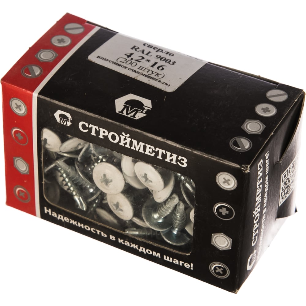 Саморез Стройметиз 4,2х16 металл-металл с прессшайбой сверло, RAL 9003 уп. 200 шт. 2530193
