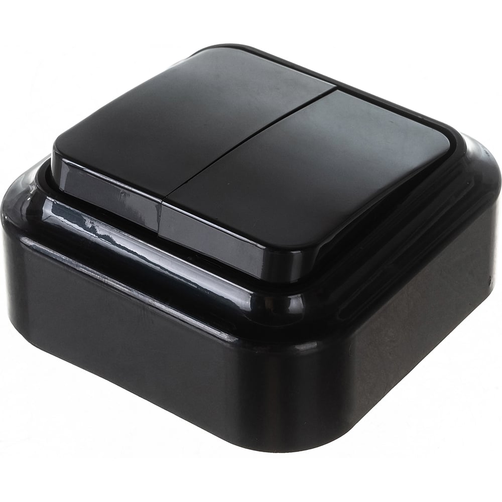 Выключатель Bylectrica 2-клавишная, открытая установка, 6 А, серия ПРАЛЕСКА, А56-134 черный