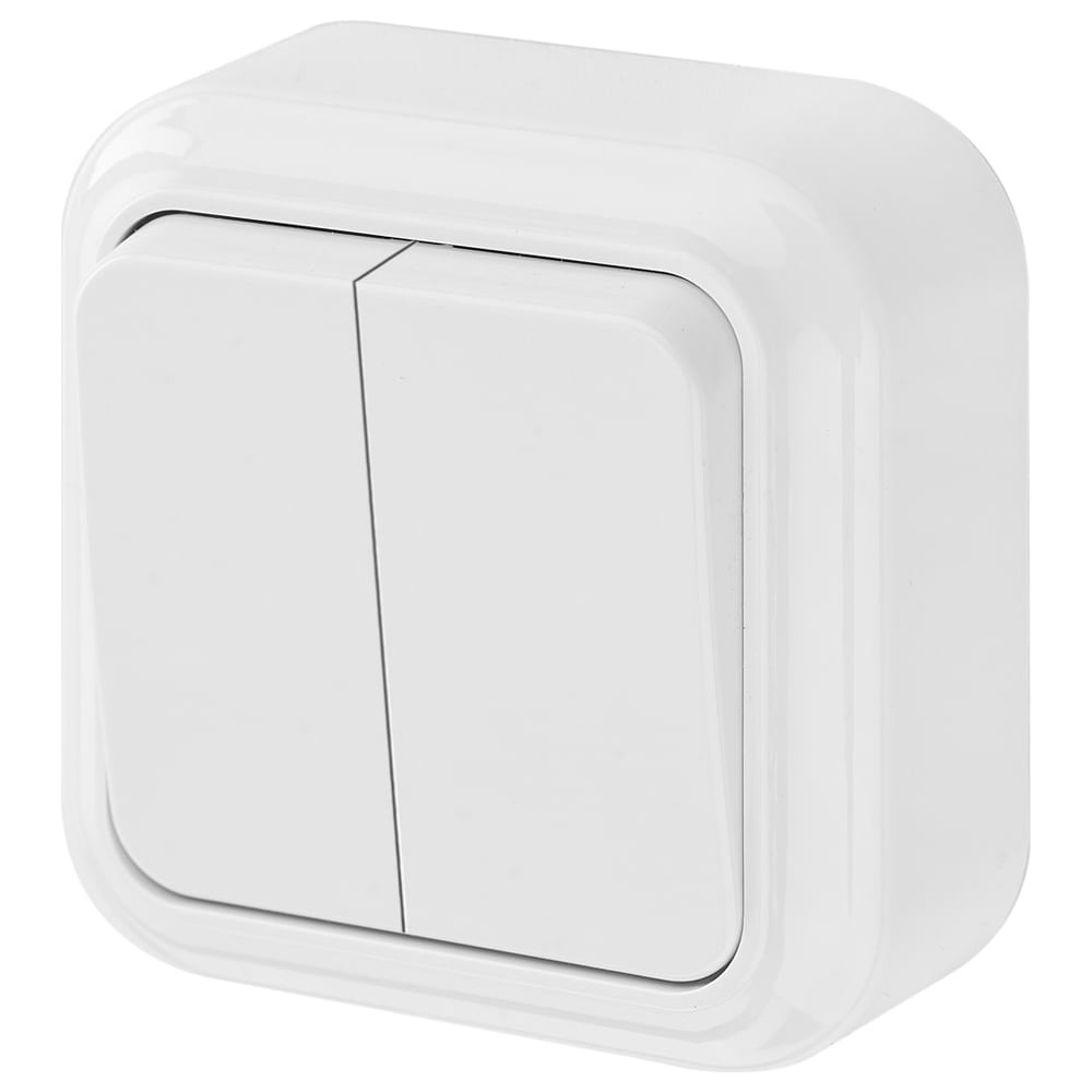 Выключатель Bylectrica 2-клавишная, открытая установка, 6 А, серия ПРАЛЕСКА, белый, А56-134