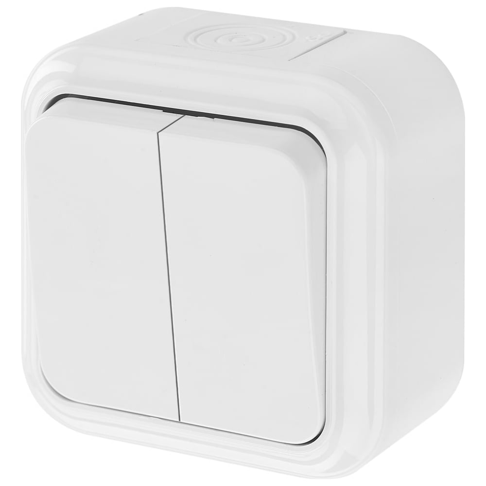Выключатель Bylectrica 2-клавишная, открытая установка, 6А, IP54, серия ПРАЛЕСКА АКВА, белый, А56-224