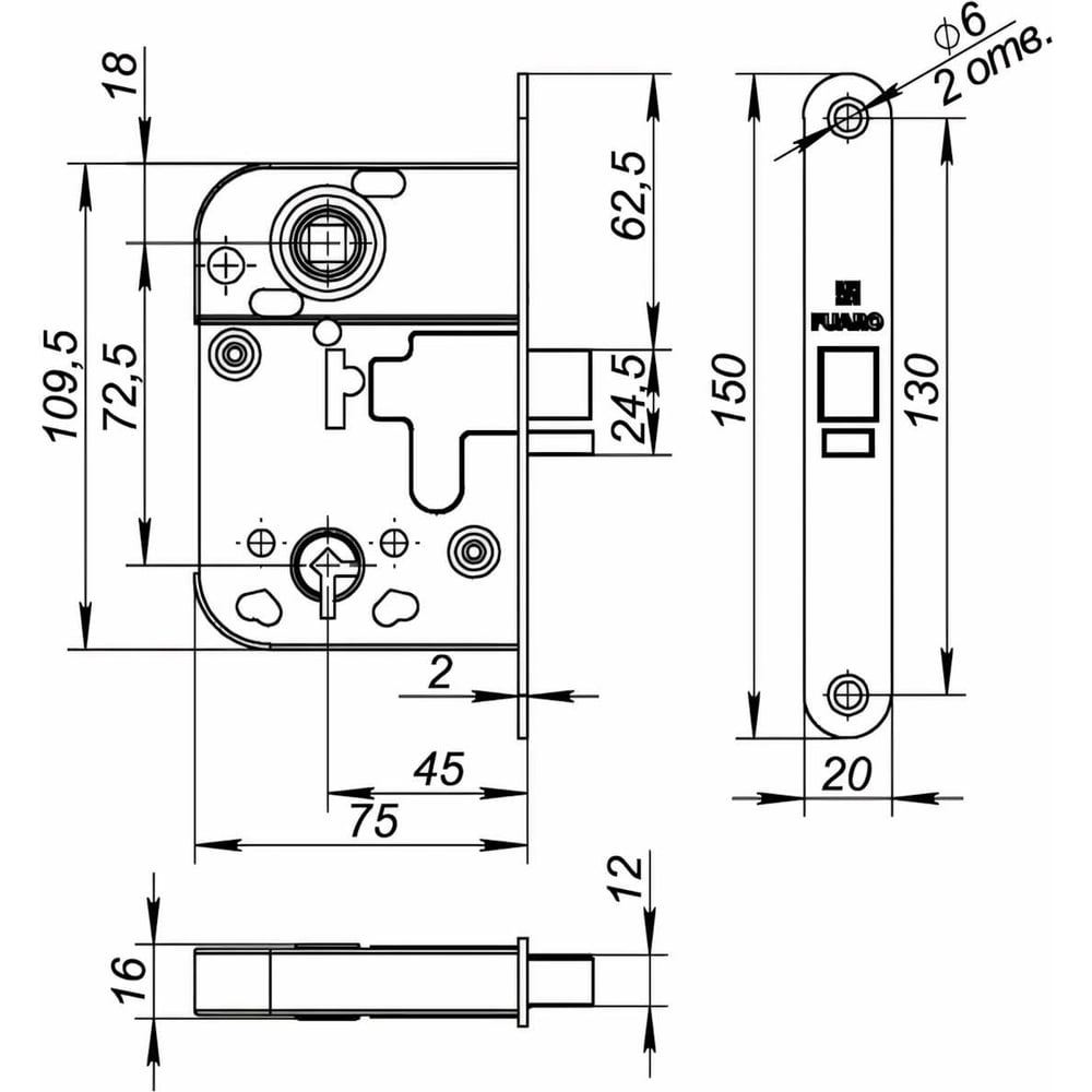 | Удаление ключевого отверстия (Backset) | 45 мм |