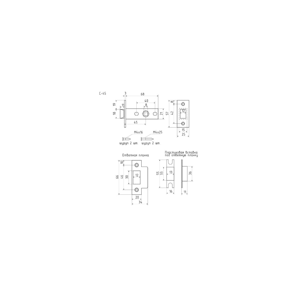 Дверная защелка НОРА-М С-45 AB 12139