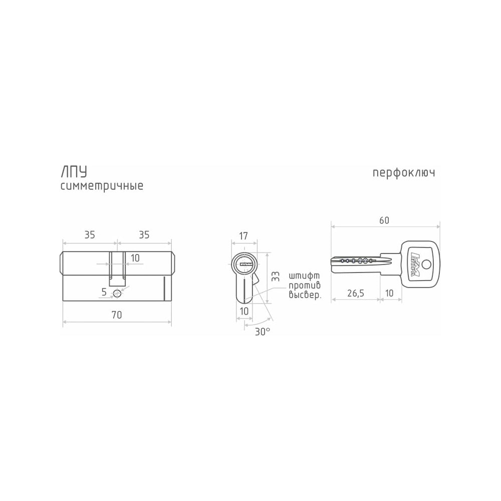 Цилиндровый механизм НОРА-М ЛПУ-70 35-35 латунь Х 5346