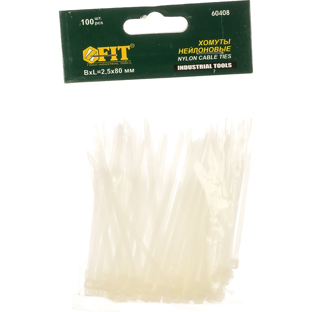 Хомуты FIT IT нейлоновые, белые для проводов, 100 шт., 80 мм 60408