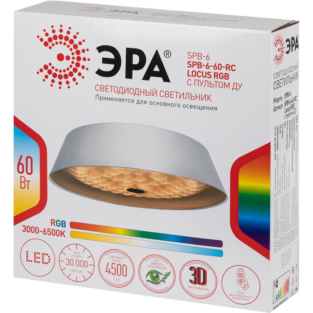 Потолочный светодиодный светильник ЭРА SPB-6-60-RC Locus RGB 60Вт RGB 3000-6500 с ДУ, Б0053315