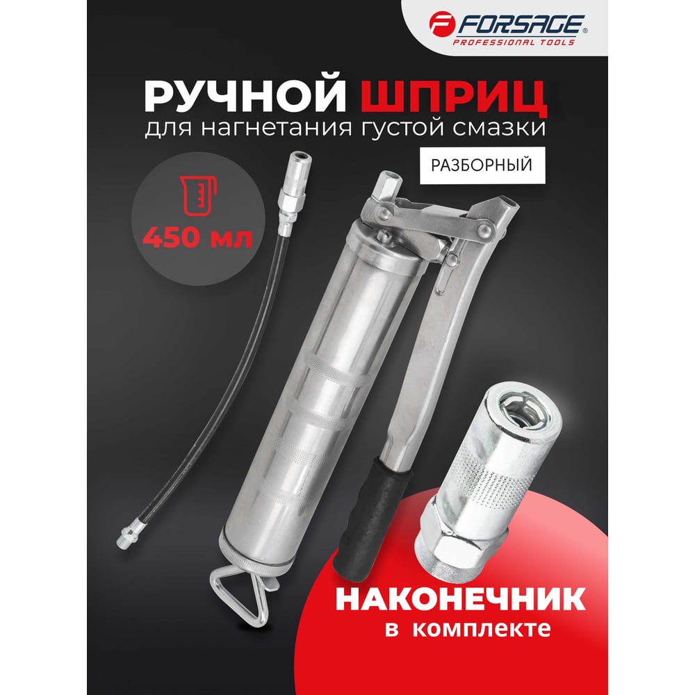 Шприц ручной Forsage для нагнетания густой смазки с гибким шлангом объем 450мл, длина шланга 300мм F-20450(59309)