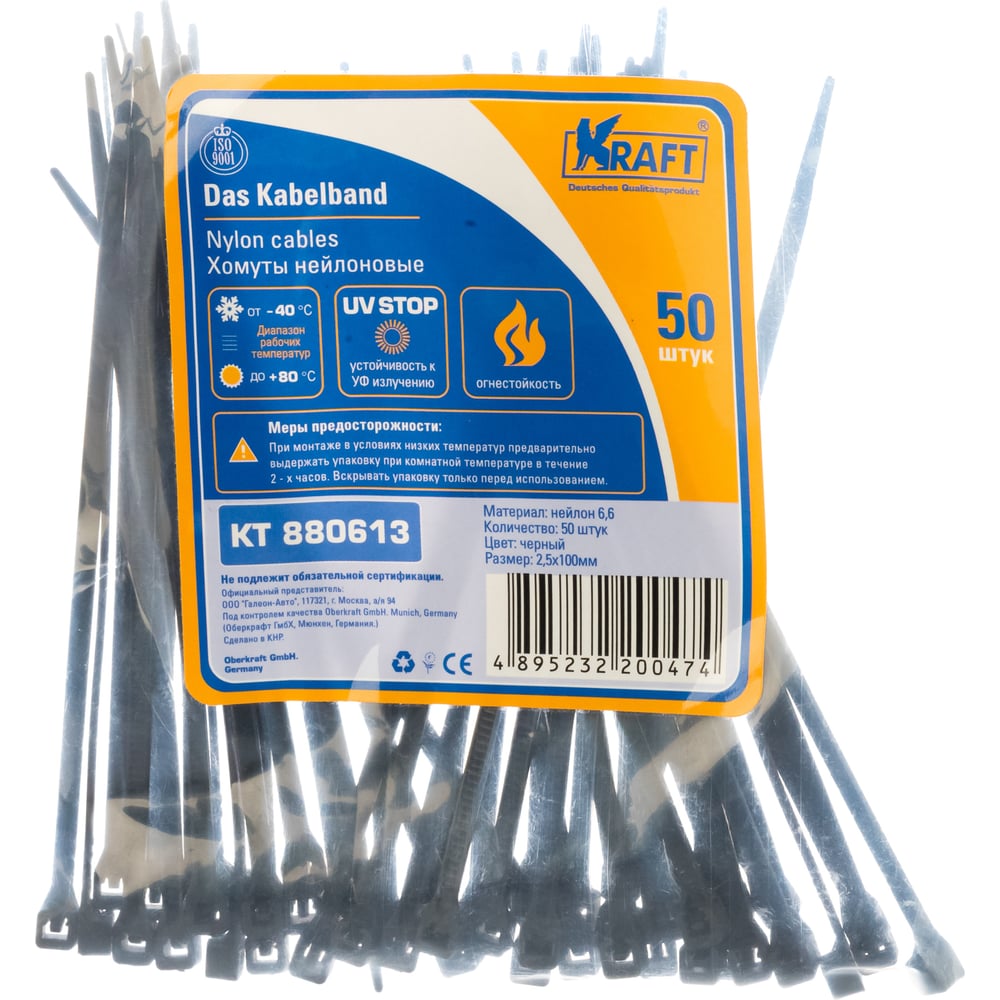 Нейлоновый хомут KRAFT черный 2,5х100 KT 880613