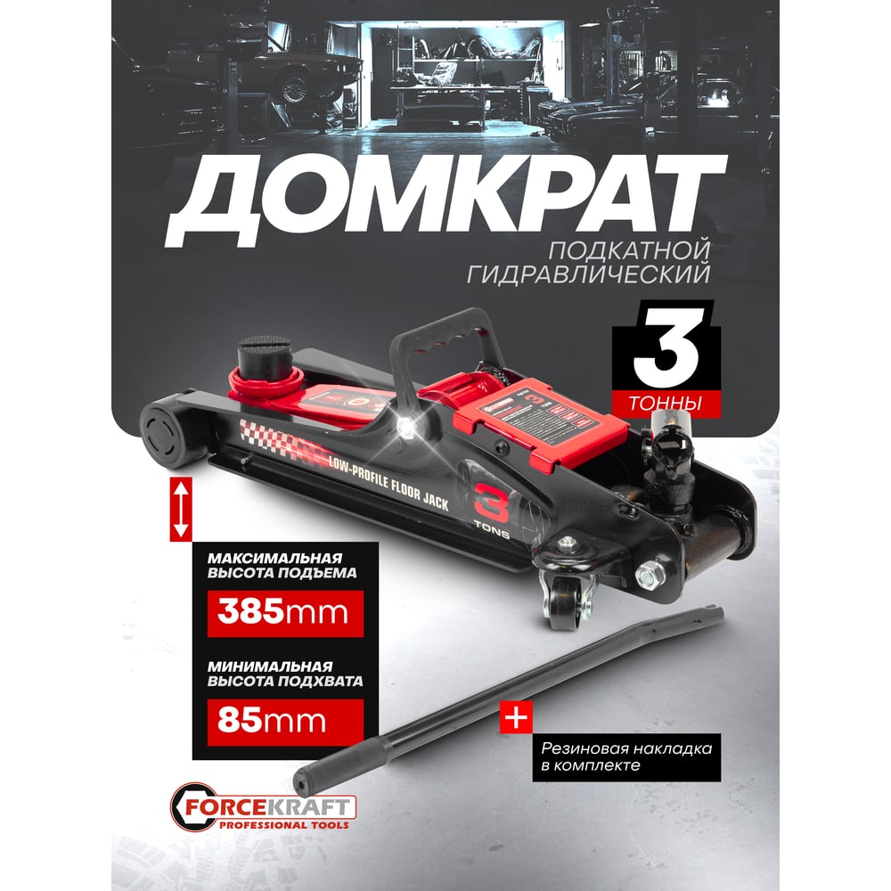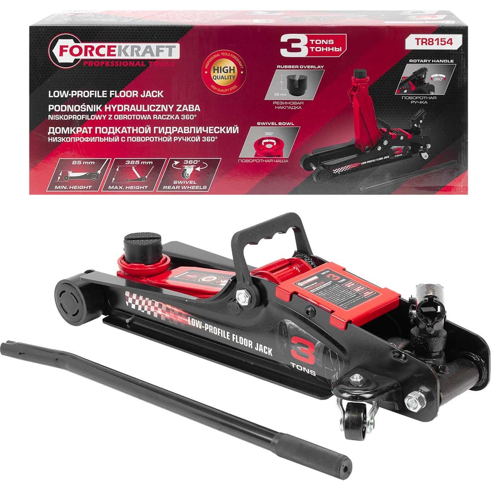 Домкрат подкатной гидравлический низкопрофильный Forcekraft 3т, поворотная ручка 360, h min 85мм, h max 385мм FK-TR8154(60244)