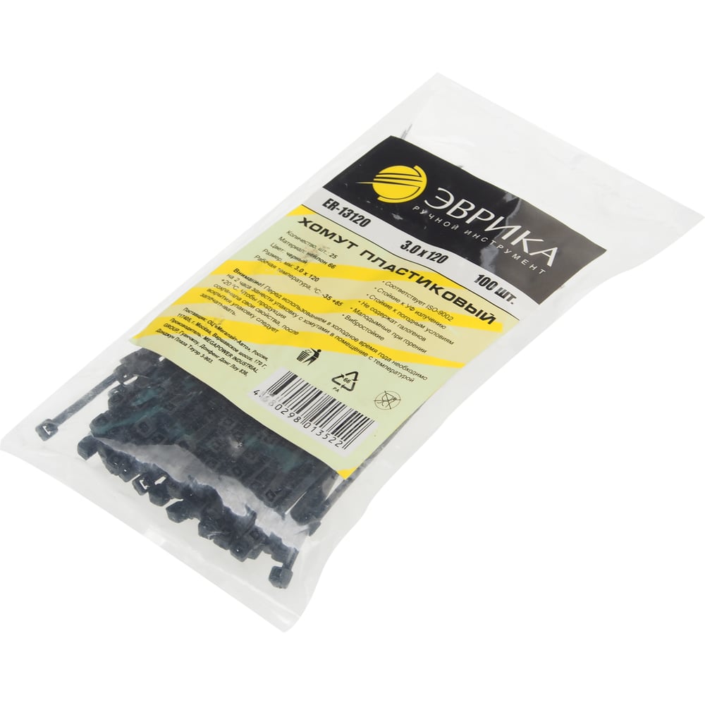 Эврика хомут пластиковый черный 3.0x120мм универсальный er-13120