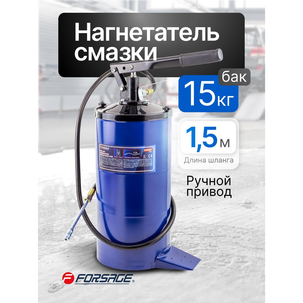 Нагнетатель смазки ручной Forsage 15кг (длина шланга 1.5, внутр.Ø 210мм, внутр. высота 410мм) F-07065A MST(59695)