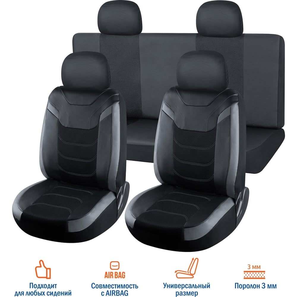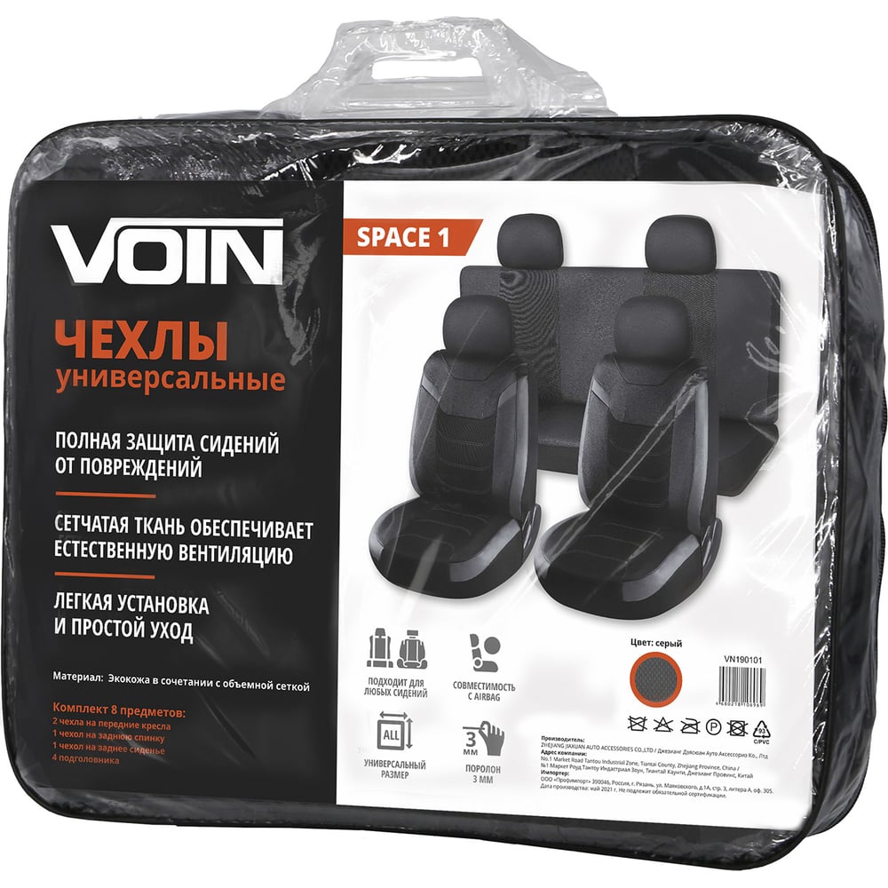 Универсальные чехлы VOIN Space 1 экокожа + сетка, размер M, 8 предметов, серый VN190101