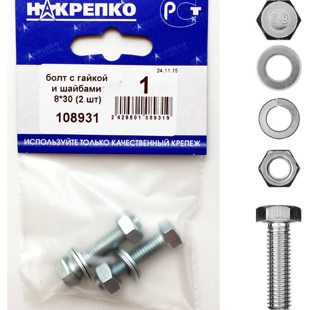 Болт НАКРЕПКО с гайкой и шайбами 8х30 50 шт. 108931