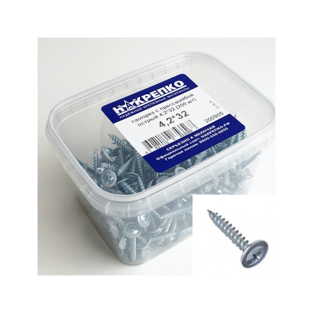 Саморез НАКРЕПКО с прессшайбой острый 4,2х32 1200 шт. 200905
