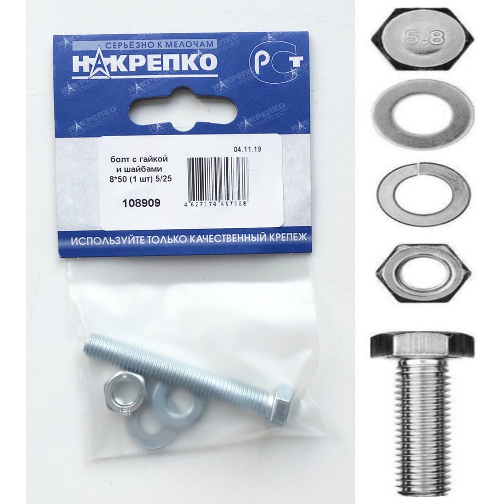 Болт НАКРЕПКО с гайкой и шайбами 8х50 25 шт. 108909