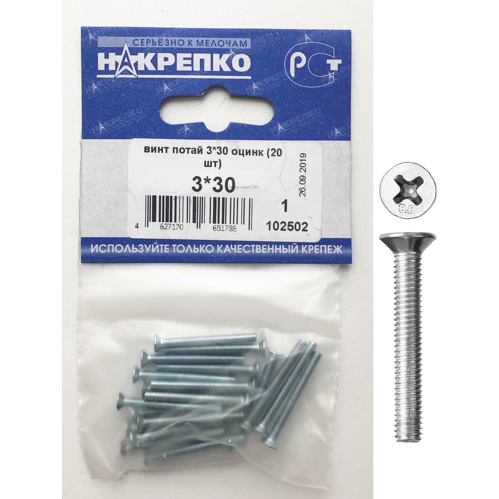 Потайной оцинкованный винт НАКРЕПКО 3х30 20 шт. 102502